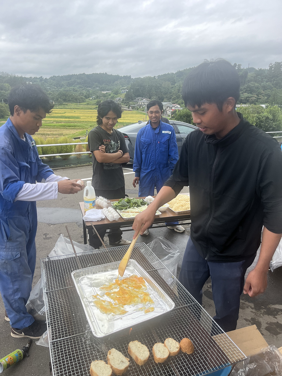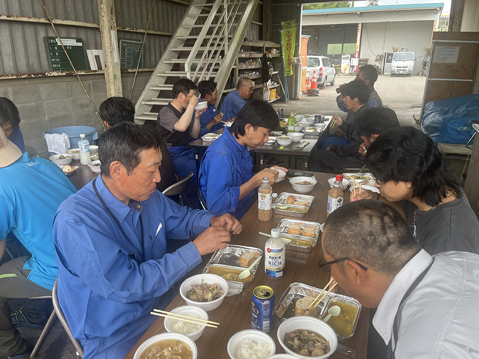日本人スタッフは、『山形風の芋煮(豚肉でなく牛肉)』と『通常の芋煮』を料理し、インドネシア実習生はインドネシア焼きそば『ミーゴレン』を料理しました。ついでにベトナムのカレーが出てくるなど、多国籍な食事会となりました。