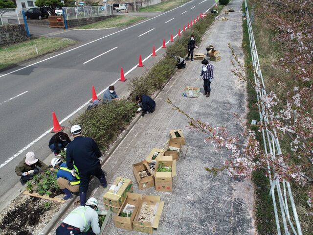 当社のスマイルロードには+αがあります。その名もまさに『+フラワー計画』。 村田ICから0分、村田町の入口にある企業として町の美化に貢献すべく、今後3年計画で、県道亘理大河原川崎線沿に約100m、花を植えて参ります。