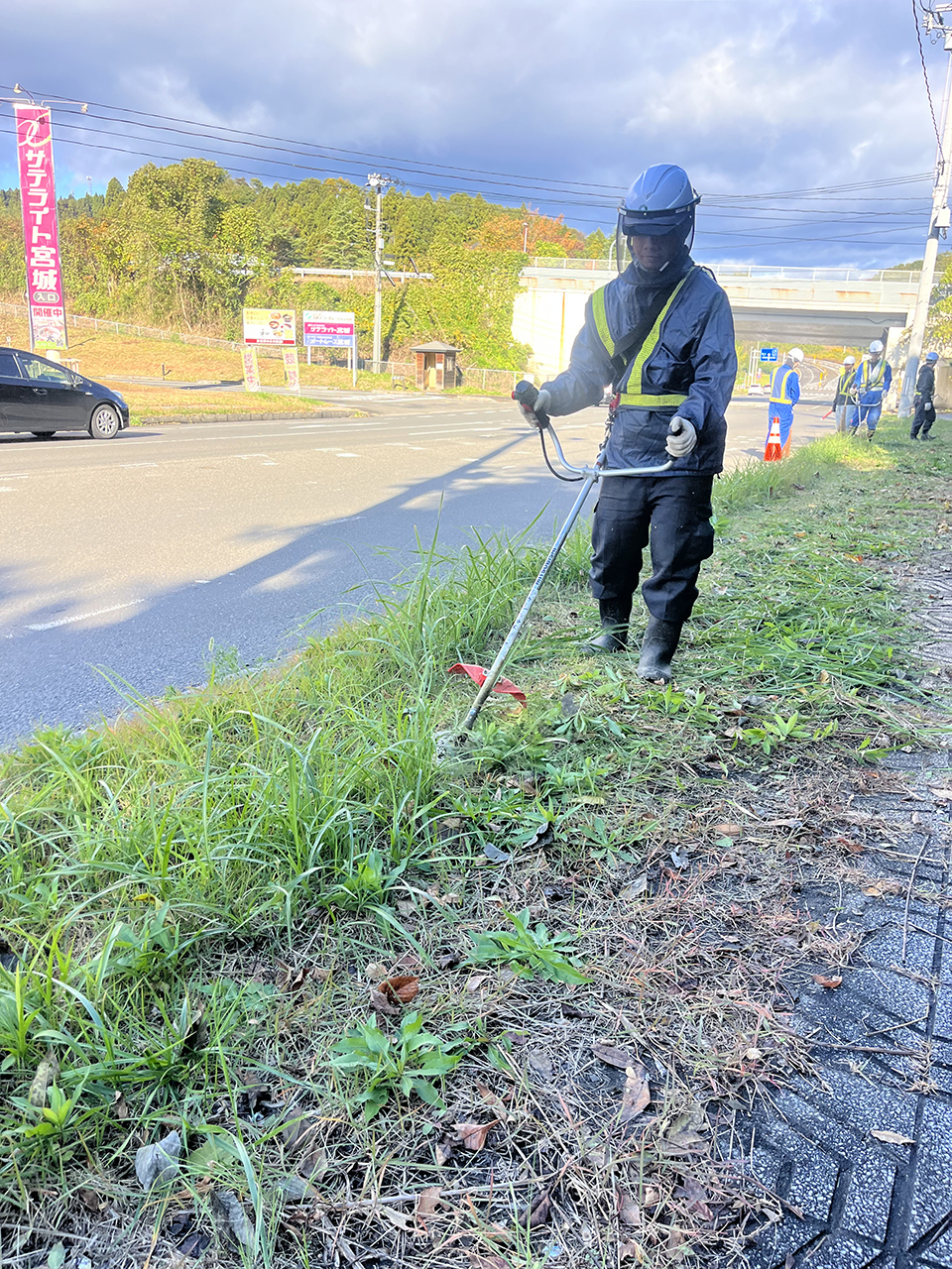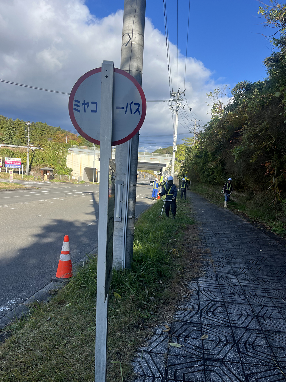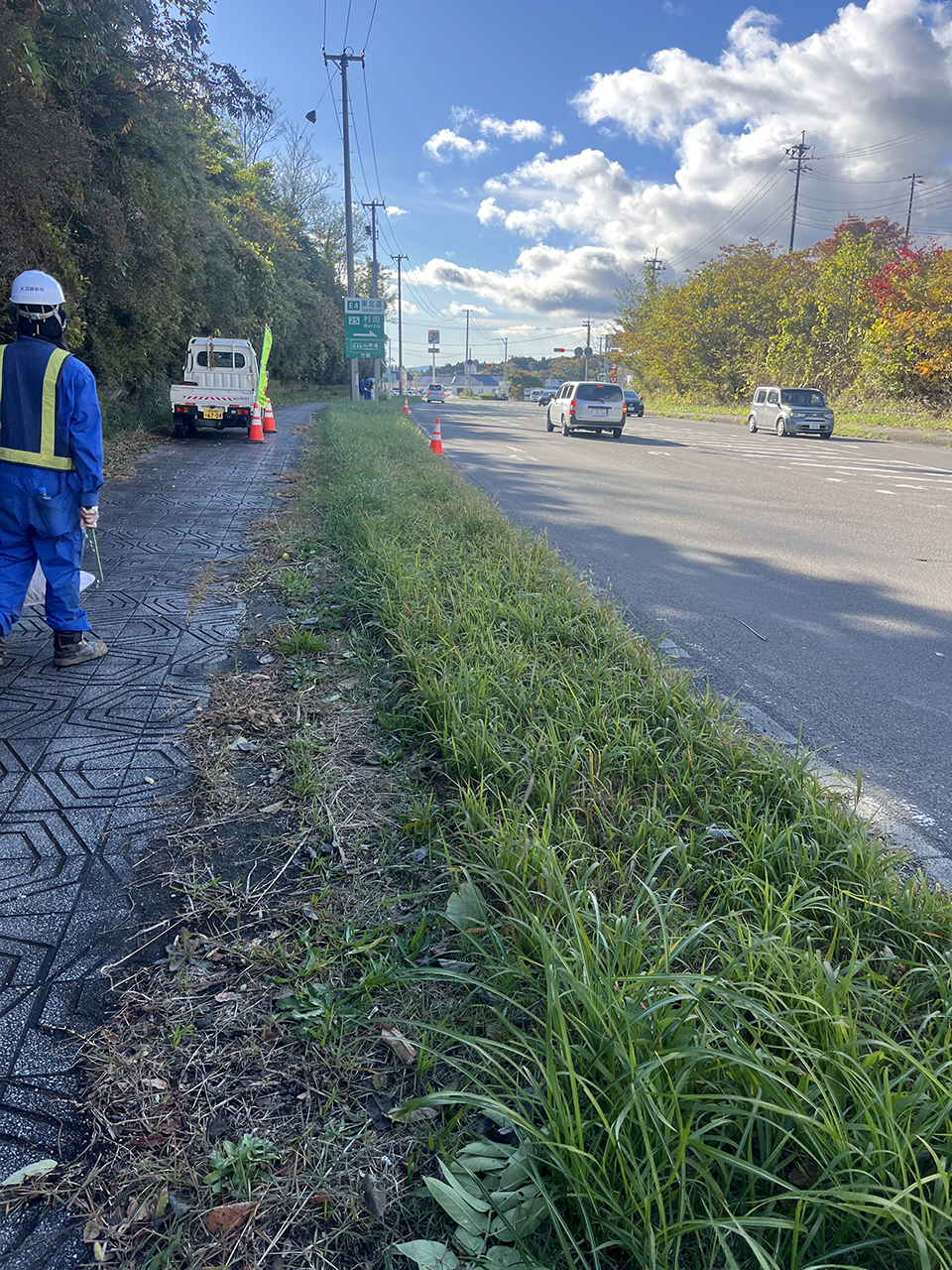 今年から村田ICの北側、つまりセブンイレブンの向こう側のバス停があるあたりも当社管理のスマイルロードに選定頂きました。花はまだですが、草刈りやゴミ拾いから着工です。バス使う人にとっては、こっちがよく歩く場所なんですよね。これから順次整備して参ります。